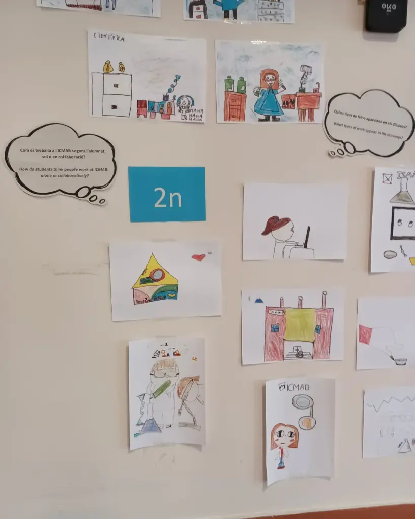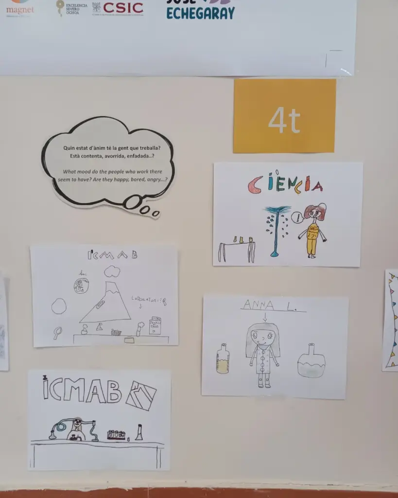 A més, tot l’alumnat de primària va participar en aquesta celebració elaborant dibuixos relacionats amb la dona i la ciència. Durant el període 11F–8M, a l’entrada de l’Institut de Ciència de Materials de Barcelona (ICMAB) hi ha una exposició sobre l’activitat de les treballadores del centre, vista des de la mirada dels nens i nenes de l’Escola José Echegaray. Aquesta iniciativa dona visibilitat tant a la tasca de les científiques com a la reflexió i sensibilitat del nostre alumnat.
