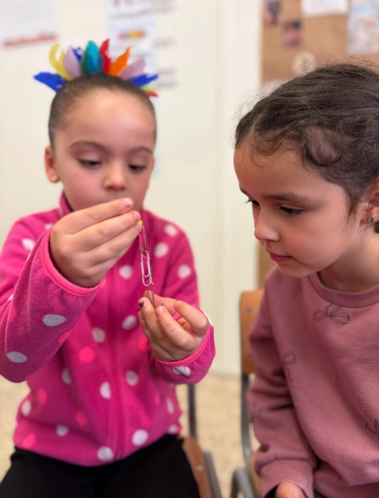 L’alumnat de 1r va participar en un taller de magnetisme dinamitzat per la científica de l’ICMAB Anna Crespi, vinculada al programa Magnet, on van poder experimentar de manera vivencial amb imants, materials metàl·lics i diferents situacions d’atracció i repulsió. A través de l’experimentació directa, els infants van formular hipòtesis, van observar, manipular i treure conclusions, tot iniciant-se en el pensament científic.